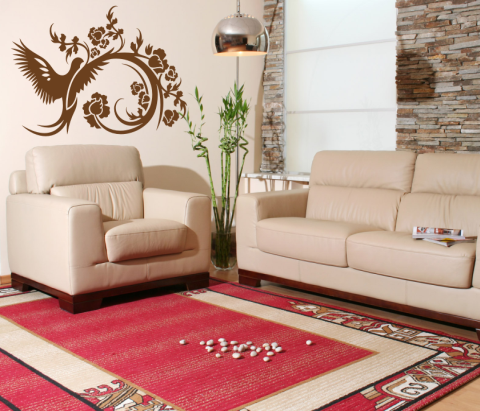 Wandtattoo Paradise Vogel beeindruckt uns mit einem schönen Ornament und passt ideal zu einem romantischen Raum.