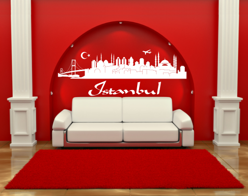 Das Wandtattoo Istanbul Skyline zeigt das Stadtpanorama mit den bekanntesten Gebäuden des Istanbuls.